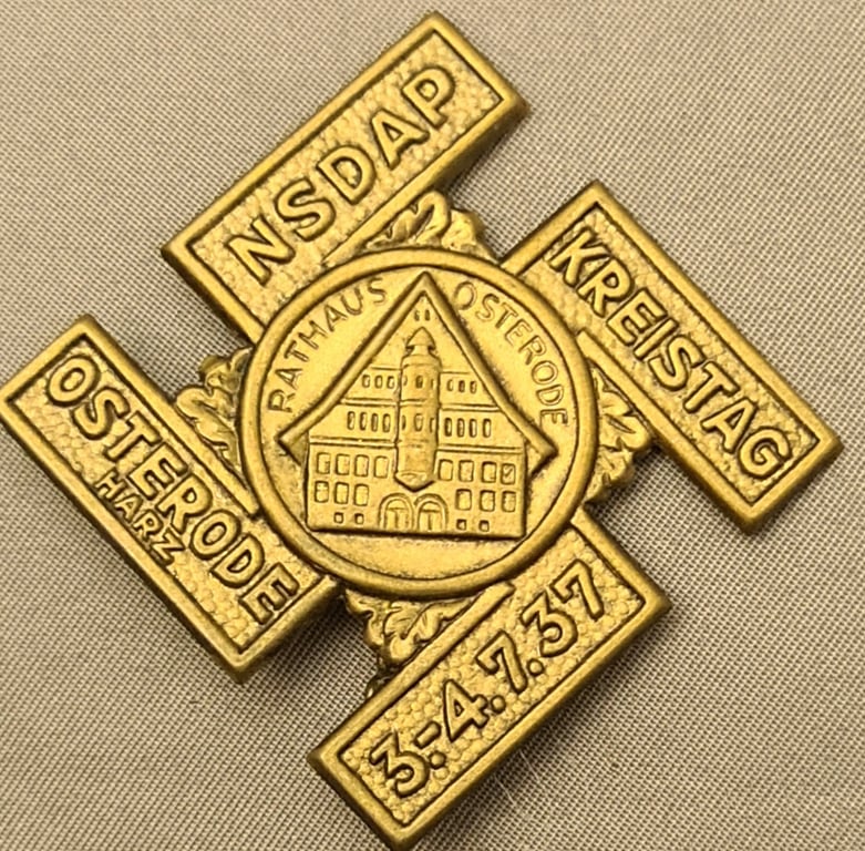 This badge commemorates a local NSDAP Kreistag (district assembly) held in Osterode am Harz on July 3–4, 1937. These events were part of the Nazi Party’s efforts to consolidate control and promote ideological unity at regional levels =Extreemly rare