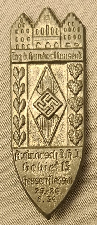 A good Hitler Youth “Tinnie” The pin may have been replaced by another pin as it would have been worn on a jacket with this type of pin.