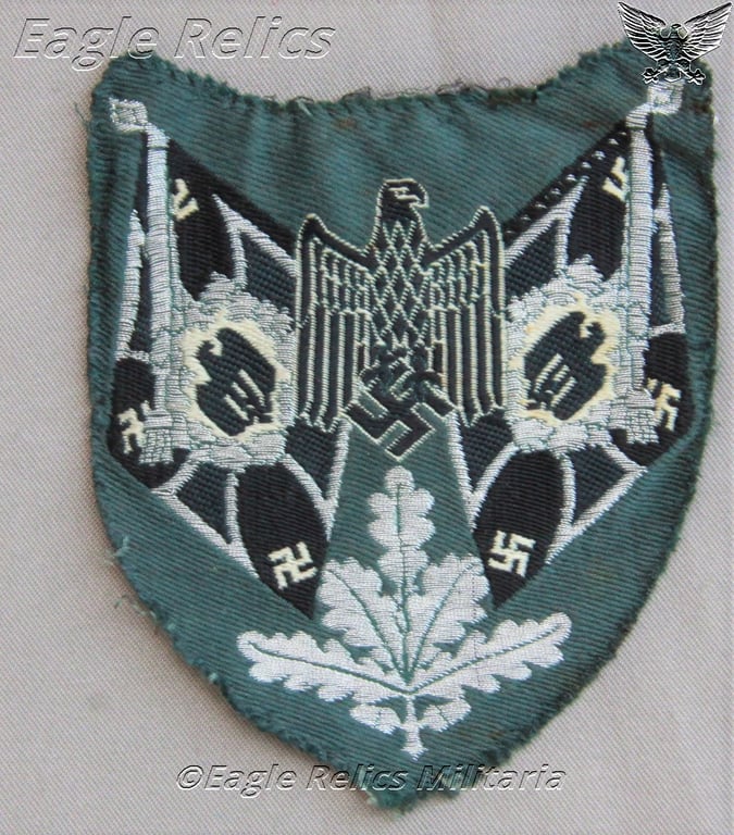 Superb condition sleeve patch for the Pioneer standard bearer. The Pioneer one is probably the rarest one to acquire, and almost all are not issued. This one has been tunic removed, and this adds a degree of desirability to it. No oxidization or faults on the stunning BeVo needle work.