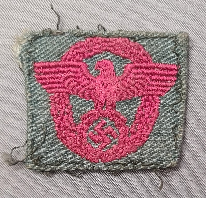 Machine embroidered Schutzpolizei Police EM/NCO’s cap Eagle eagle is machine embroidered with a red swastika on green cloth