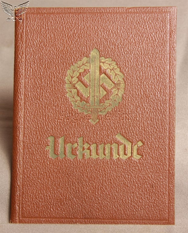 A rare and interesting SA Sports book filled out for the award of a Bronze sports badge The Badge was awarded to Werner Frank whose Profession was flanzer (Planter or Farmer) Date of Birth: 27.7.09 Place of Birth: Maweni / Afrika Residence: Mandera Estate The birth and residence information suggest the individual lived in German East Africa. Tanga is a city in present-day Tanzania, which was part of German East Africa before WWI. "Mandera Estate" and the address indicates he was likely part of the German colonial farming community.