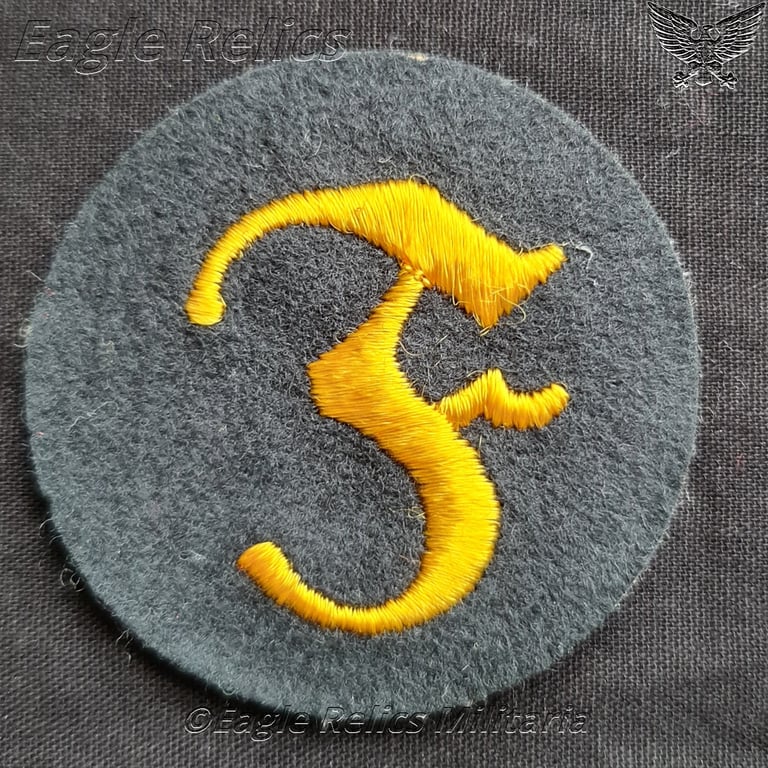 re-1940 dark green badge cloth base with a machine embroidered Gothic, “F”, in golden yellow threads, indicating Feuerwerker, (Artificer/Ordnance Technician). Unissued exampel in very good condition with original protective backing cloth intact to the reverse.